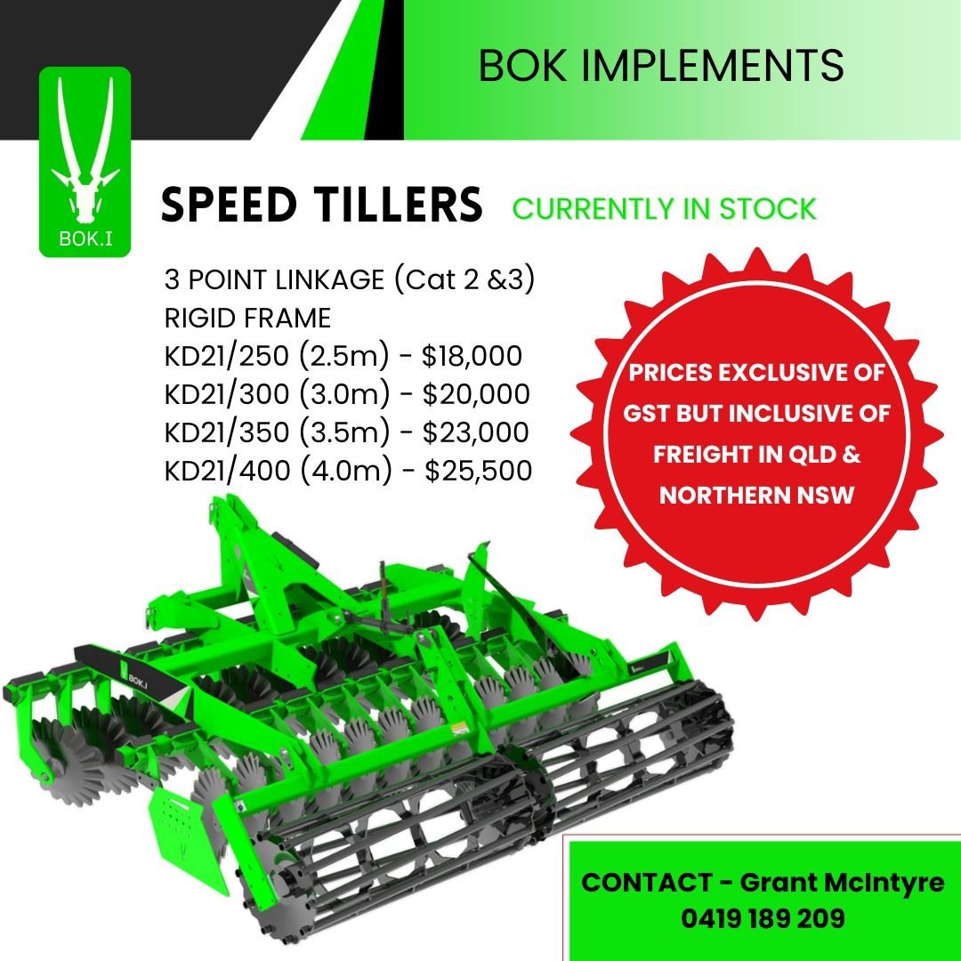 Whether you’re prepping for planting or managing stubble, the BOK Speed Tiller gets the job done right — every time.